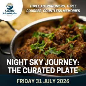 Gain a unique perspective from your guided stargazing experience as you taste your way through three courses of local food in a relaxed small-group atmosphere. This welcoming evening will open your eyes and attune your tastebuds to our unique place in the universe!