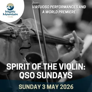 Join friendly faces on the Mystic Mountain bus as we spirit you away to QPAC for a stunning performance of virtuoso violin! Organised by QPAC host Paul Sweeney, this journey will share world-class talent, informative commentary, and a delightful Sunday out.